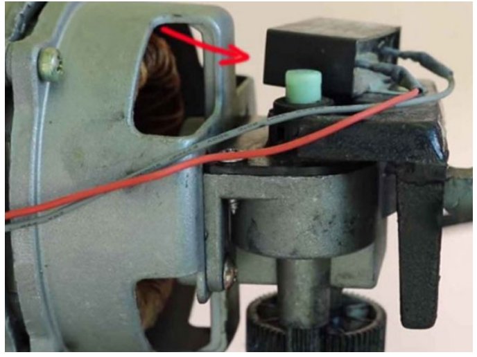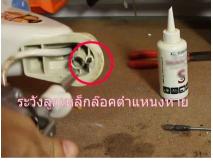 2 ต่อมาเราก็ใช้คีมปอ กสายไฟ ปอ กสายไฟออ กเพื่อจะทำการบัดกรี แต่ตรงจุดนี้ต้องใช้ความระมัดระวังเป็นอย่ างมาก เพราะสายไฟมอเตอร์นั้น มีขนาดเล็กข า ดง่าย แล้วเมื่อปอ กสายไฟเสด เราก็จะนำเอาหัวแร้งกับตัวบัดกรีมาต่อสายไฟกับตัว C ตัวใหม่ หากไม่มีหัวแร้ง สามารถนำเทปพันสายไฟมาใช้แทนได้ พันจุดต่อสายไฟทั้งสองให้แน่นเท่านี้ก็เรียบร้อย
