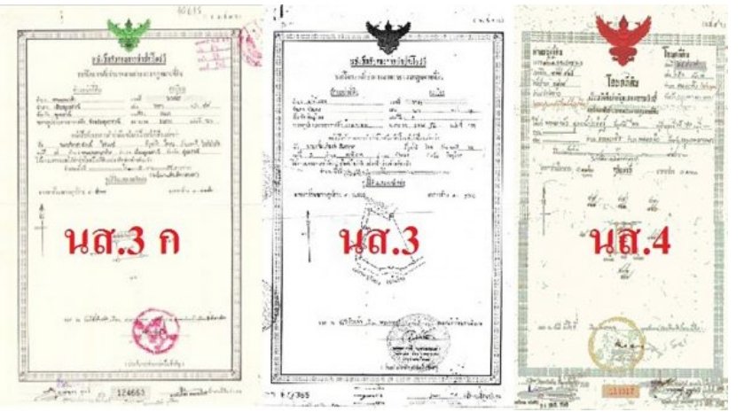 2 โฉนด น.ส. 3 หรือ หนังสือรับรองการทำประโยชน์ โดยจะแบ่งเป็น น.ส.3 และ น.ส. 3 ข และ น.ส. 3 ก